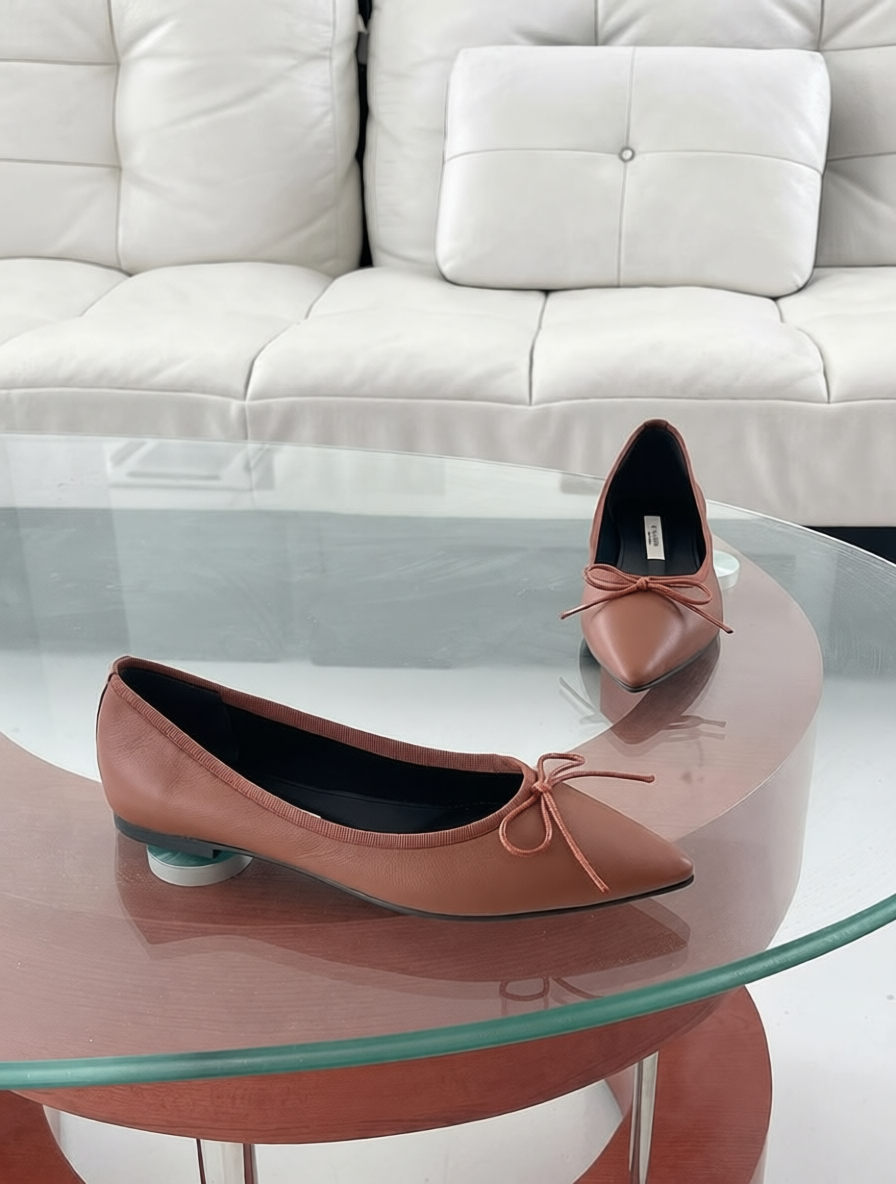 These elegant flat shoes feature a sophisticated square toe design complemented by a delicate ribbon detail. Crafted from high-quality 100% cowhide leather, they offer a perfect blend of durability and comfort for daily wear. The minimalist aesthetic makes them versatile enough to pair with both casual and formal outfits.