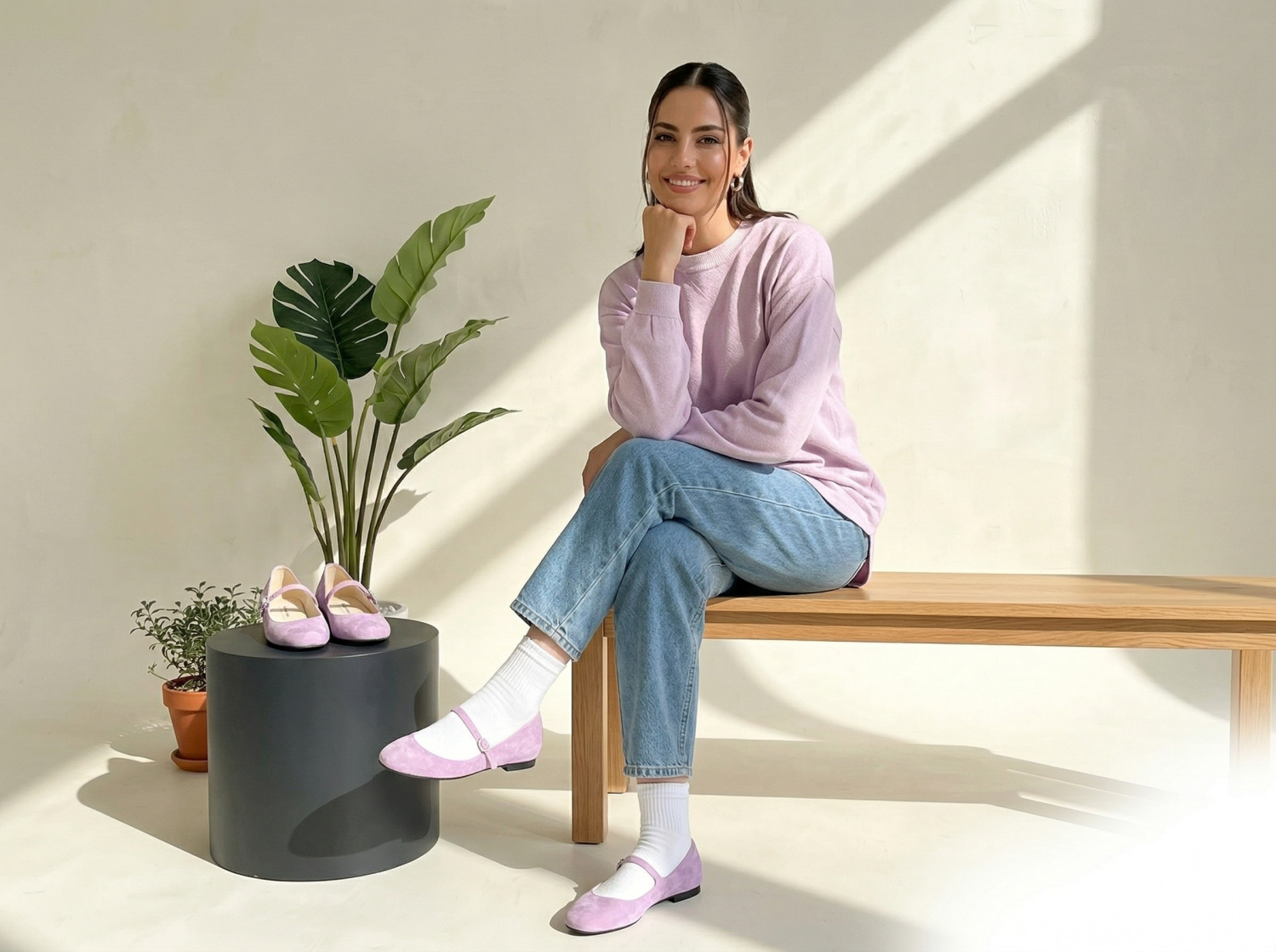 These elegant Mary Jane flats are crafted from high-quality genuine lambskin leather, offering a soft and comfortable fit for all-day wear. Featuring a classic round toe design and a delicate buckled strap, they provide a secure and stylish look. The low block heel ensures stability while maintaining a sophisticated silhouette. Perfect for both casual outings and professional settings, these versatile shoes come in a variety of seasonal colors including Black, Beige, Pink, and Purple. Made with precision in South Korea.