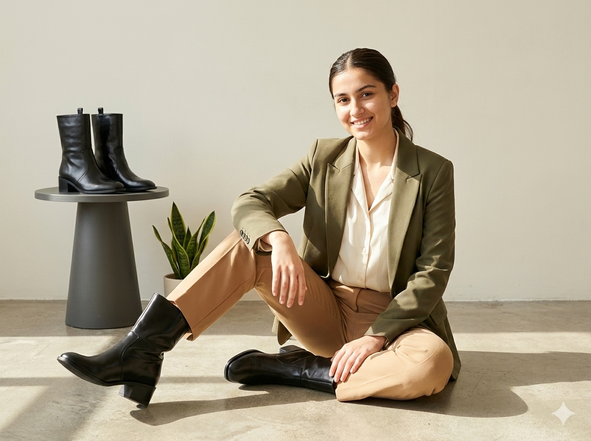 These stylish half-ankle boots feature a clean, modern design with a unique buckle strap detail for added flair. Crafted from high-quality synthetic leather, they offer a smooth finish and durable wear. The 4cm block heel provides a comfortable lift, making them perfect for all-day use. With a sleek silhouette and available in versatile colors, these boots are an ideal choice for both casual and semi-formal outfits.