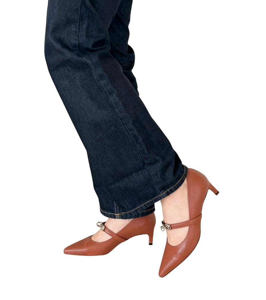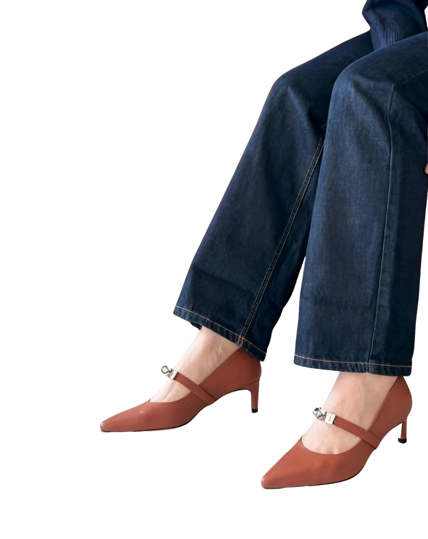 Centered around the classic Mary Jane shoe style, it blends fashion and elegance. The shoe body is crafted from high-quality leather, with smooth and neat lines; the pointed toe design can modify the foot shape and add a light and fashionable atmosphere. The Mary Jane-style strap element endows the shoe with a retro and sweet vibe, and the metal accessories on the strap further highlight the exquisite details. The heel adopts a stiletto design with a moderate height, balancing a stylish look and walking stability, making it not easy to tire the feet even when worn for a long time. It is available in various colors such as milk tea, caramel brown, and classic black. Whether paired with a skirt to create a soft style or combined with trousers for a neat commuting look, it can be easily pulled off. It is a practical shoe that combines retro charm with modern fashion, adding layers and highlights to daily outfits.