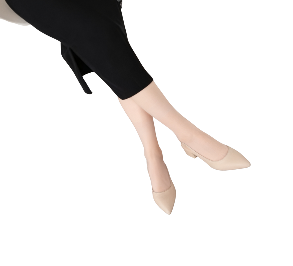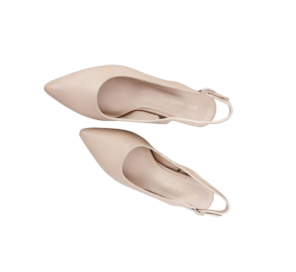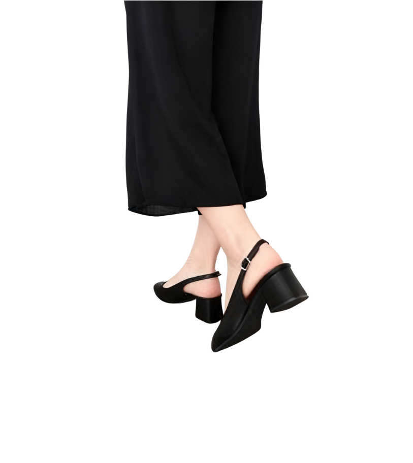These pointed-toe, slingback block heels are a true ensemble highlight with their refined design and comfortable silhouette. The pointed toe flatters the foot and subtly elongates the legs. The slingback buckle design adds a lightweight, stylish touch while making it easy to put on and take off. The contoured shape of the instep further enhances comfort. The block heel provides both stability and a flattering ankle effect, ensuring fatigue-free walking even after long days.