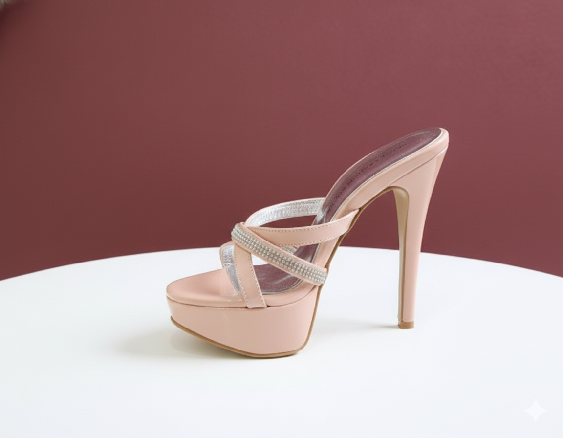 Stylish Cubic X-Line Gabosi Mule, available in three colors: Black, Pink, and White. Features a high heel and platform for a trendy look. Perfect for various occasions, with easy slip-on convenience.