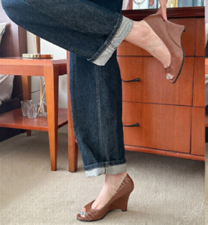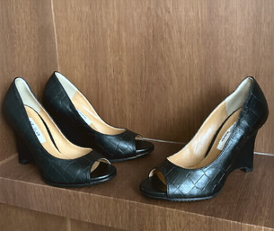 These classic, open-toe wedge heels are made from 100% lambskin. They are available in Black, Burgundy, and Camel. Care instructions recommend hand wash, and explicitly advise against bleaching, ironing, or machine washing. Single-piece orders are allowed.