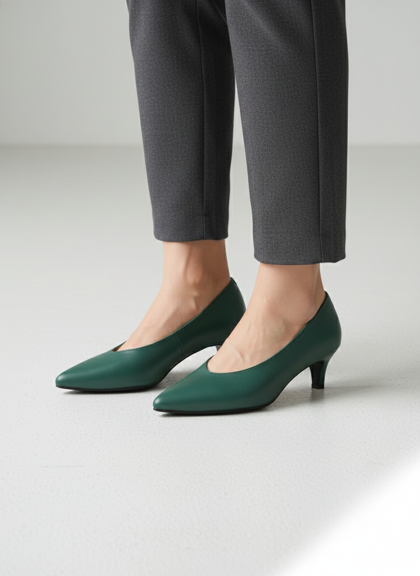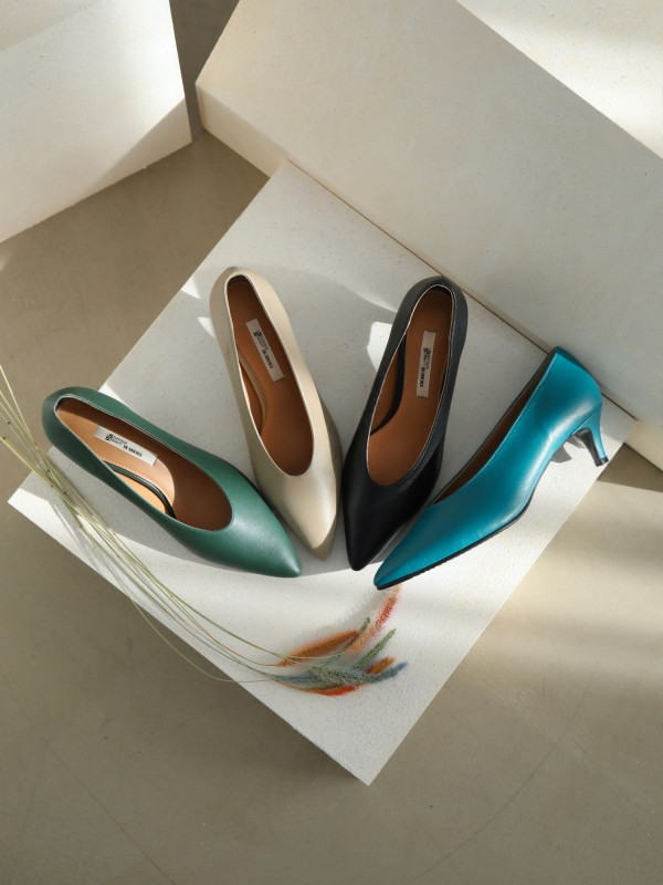 These elegant handmade Korean pumps are crafted from high-quality cowhide leather. Featuring a sophisticated V-cut design, they offer a modern and sleek silhouette that elongates the leg. The 5cm medium heel provides a perfect balance of style and comfort, making them ideal for both office wear and formal occasions. Available in four versatile colors: Black, Beige, Khaki, and Light Skyblue.
