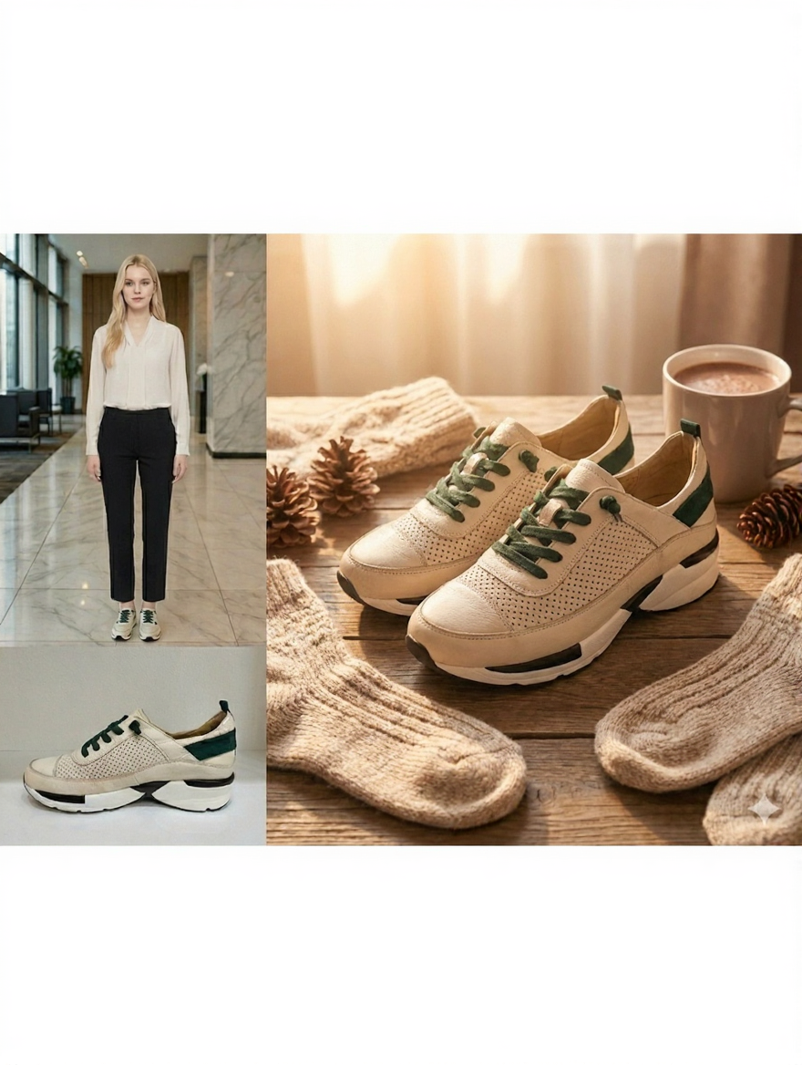 These stylish 7722 slip-on sneakers feature a sophisticated ivory base with contrasting green accents for a modern, athletic look. Designed with comfort and breathability in mind, the upper is crafted from high-quality cowhide leather with perforated details to ensure airflow. The sturdy, ergonomic sole provides excellent support for all-day wear, making them a perfect blend of casual elegance and functional performance.