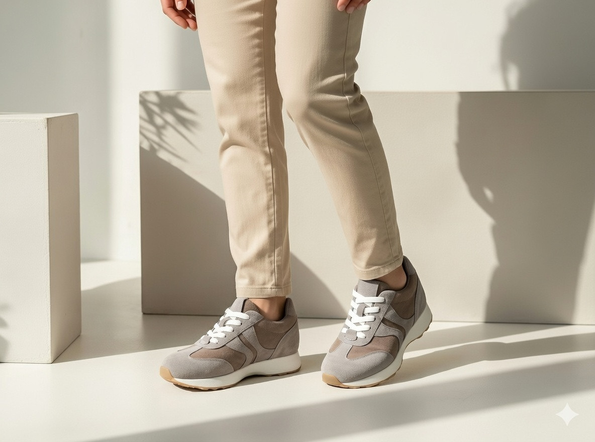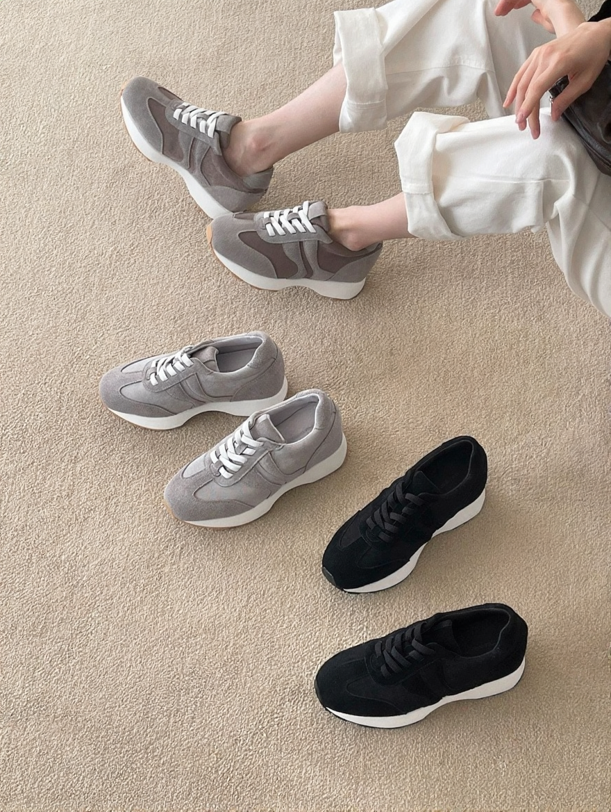 Elevate your style and stature with these premium hidden heel platform sneakers. Designed with a 7cm height-increasing sole, they offer a significant boost while maintaining the look of a standard casual shoe. The upper is crafted from a sophisticated leather combo, providing both durability and a refined aesthetic. Made in South Korea, these sneakers are available in classic tones including Black, Gray, and Brown, making them a versatile addition to any wardrobe for those seeking comfort, quality, and an extra lift.