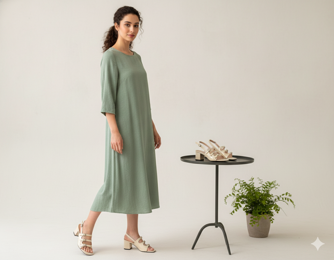 A pair of slingback sandals featuring a block heel of 5cm and three adjustable buckled straps across the front. The composition is synthetic leather. Available in Charcoal and Ivory. Minimum order of one piece is allowed.