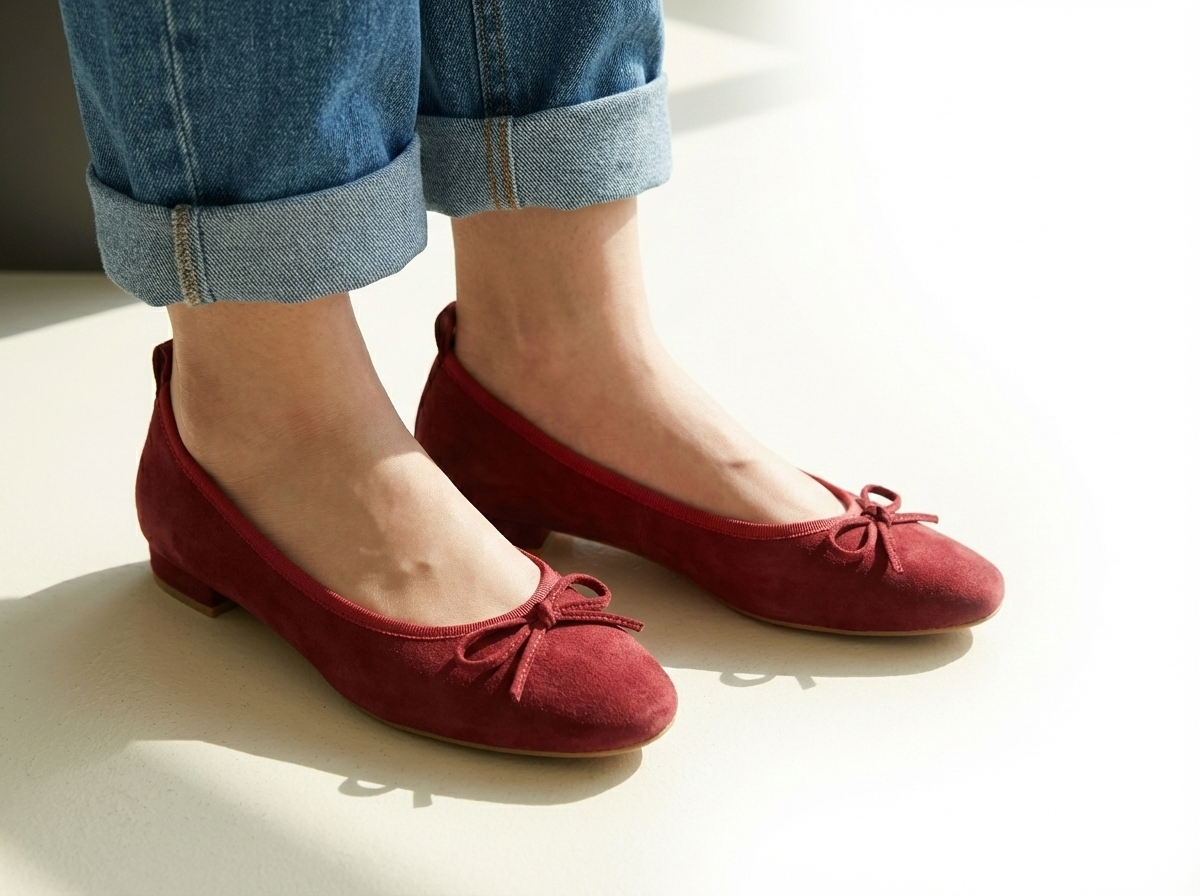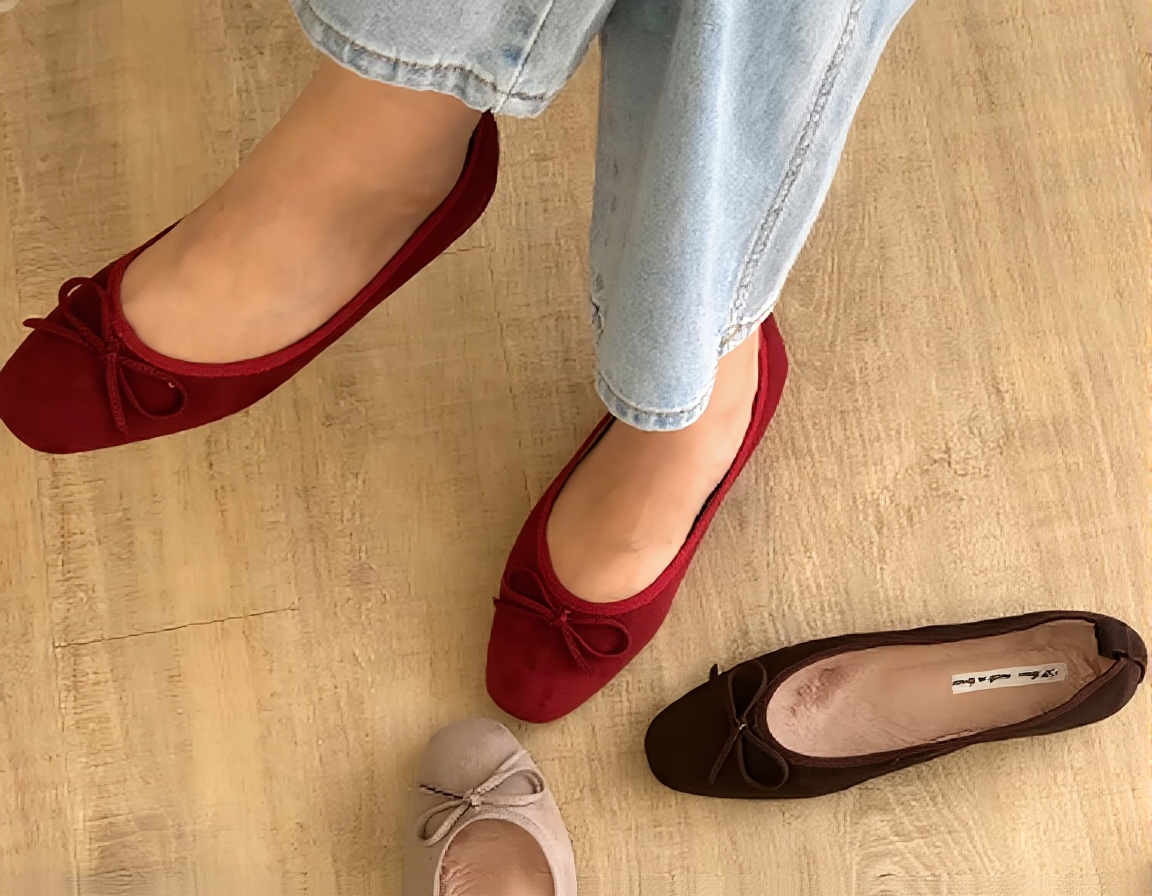 These elegant flat shoes are crafted from high-quality suede, featuring a charming ribbon detail. Designed for the Fall/Winter season, they are equipped with a warm fur lining to provide comfort and warmth in cooler weather. The shoes have a subtle 2 cm heel, making them ideal for daily wear while maintaining a sophisticated look. Made in South Korea.