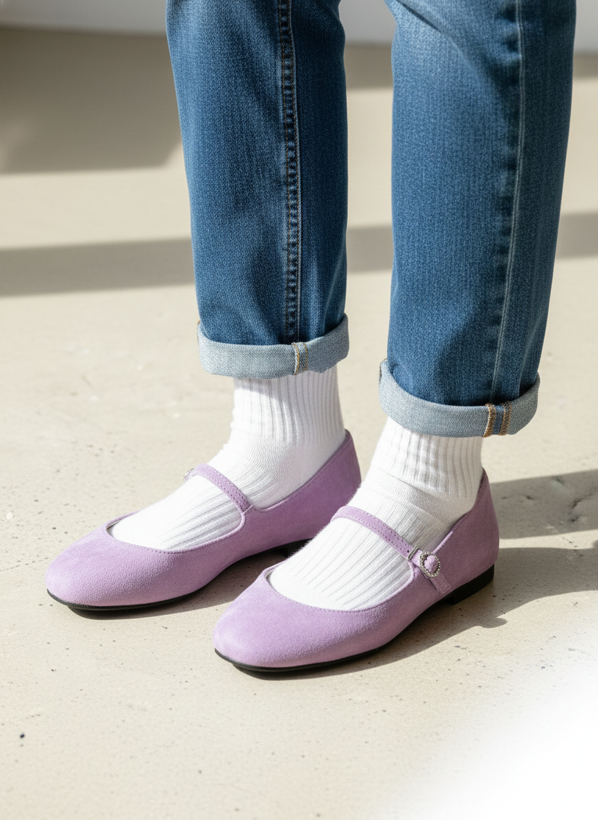 These elegant Mary Jane flats are crafted from high-quality genuine lambskin leather, offering a soft and comfortable fit for all-day wear. Featuring a classic round toe design and a delicate buckled strap, they provide a secure and stylish look. The low block heel ensures stability while maintaining a sophisticated silhouette. Perfect for both casual outings and professional settings, these versatile shoes come in a variety of seasonal colors including Black, Beige, Pink, and Purple. Made with precision in South Korea.