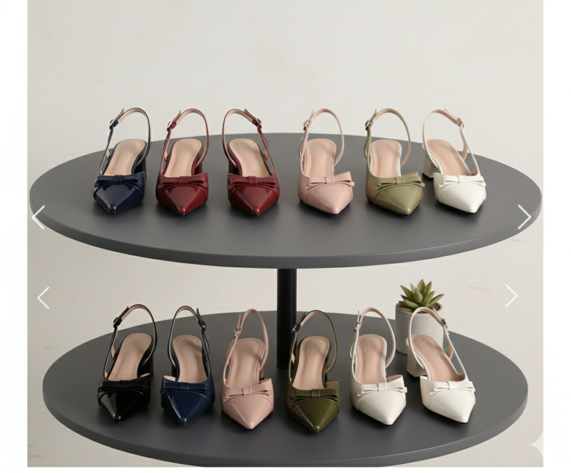 Slingback shoes that are domestically made in South Korea. Available in Red, Gray, Black, and Beige.