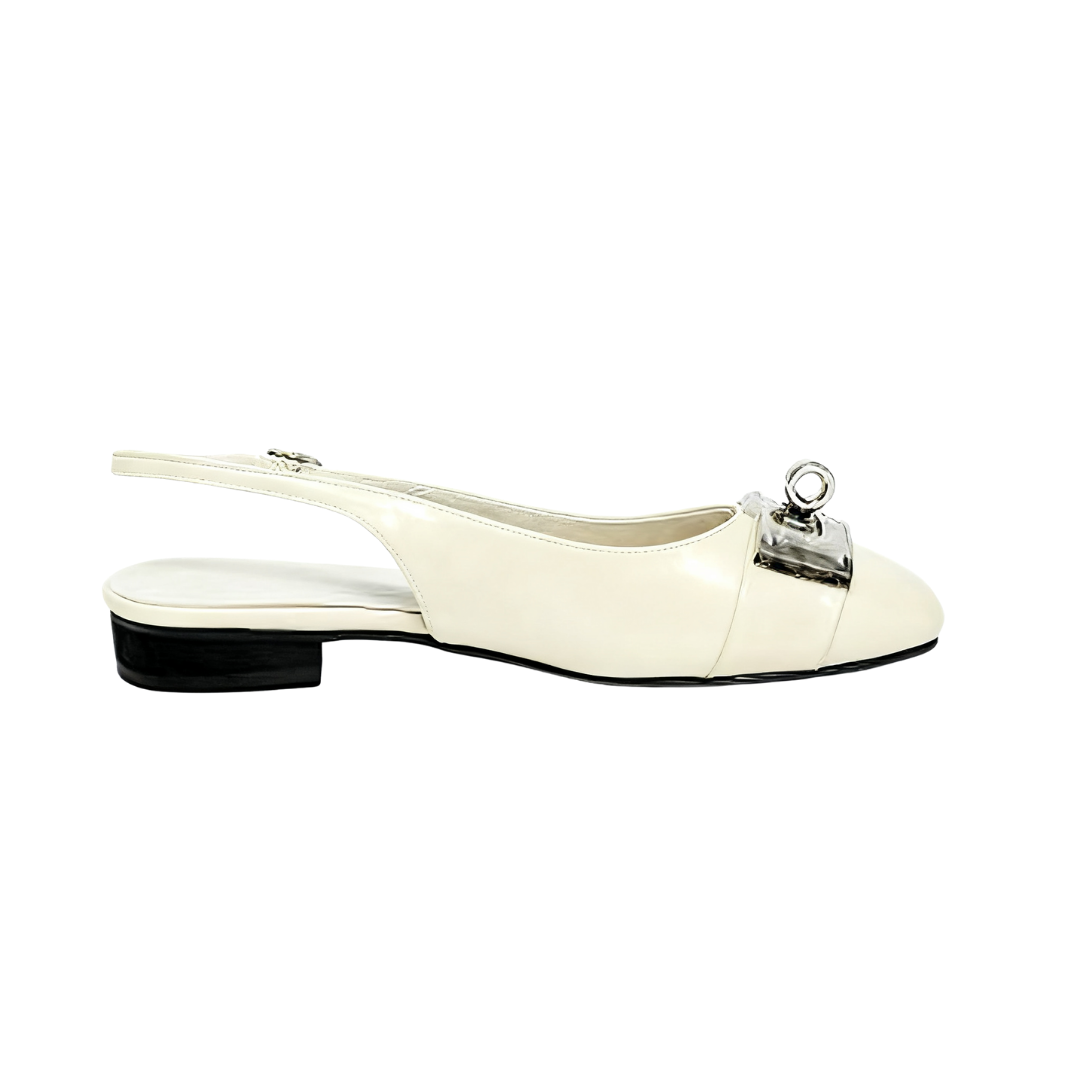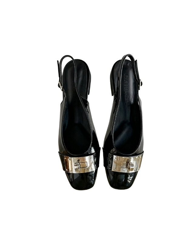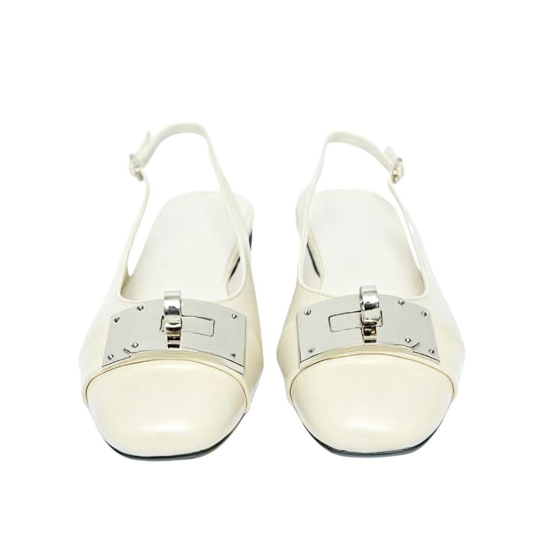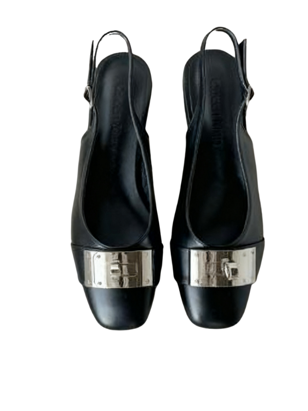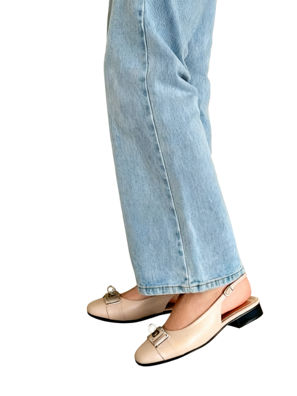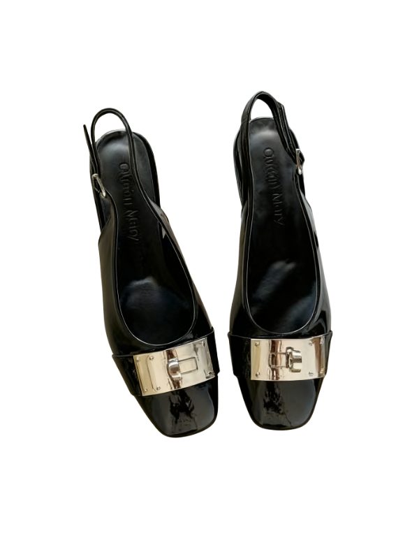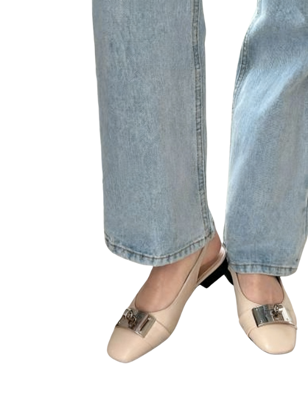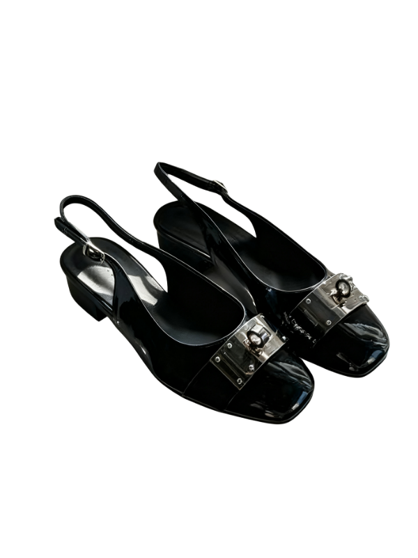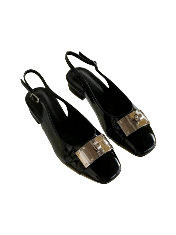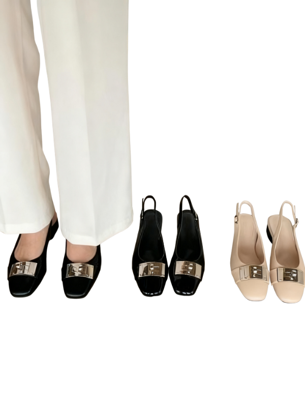 The square toe design flatters the foot's shape, accented by a striking metal buckle, creating a simple yet refined look. The back strap allows for breathability during seasonal changes, and the adjustable buckle allows for a comfortable fit, making it easy to put on and take off.