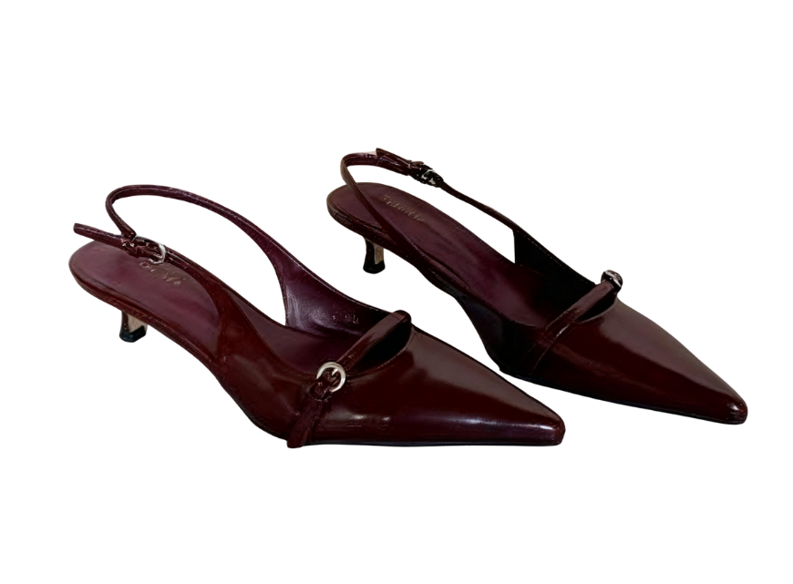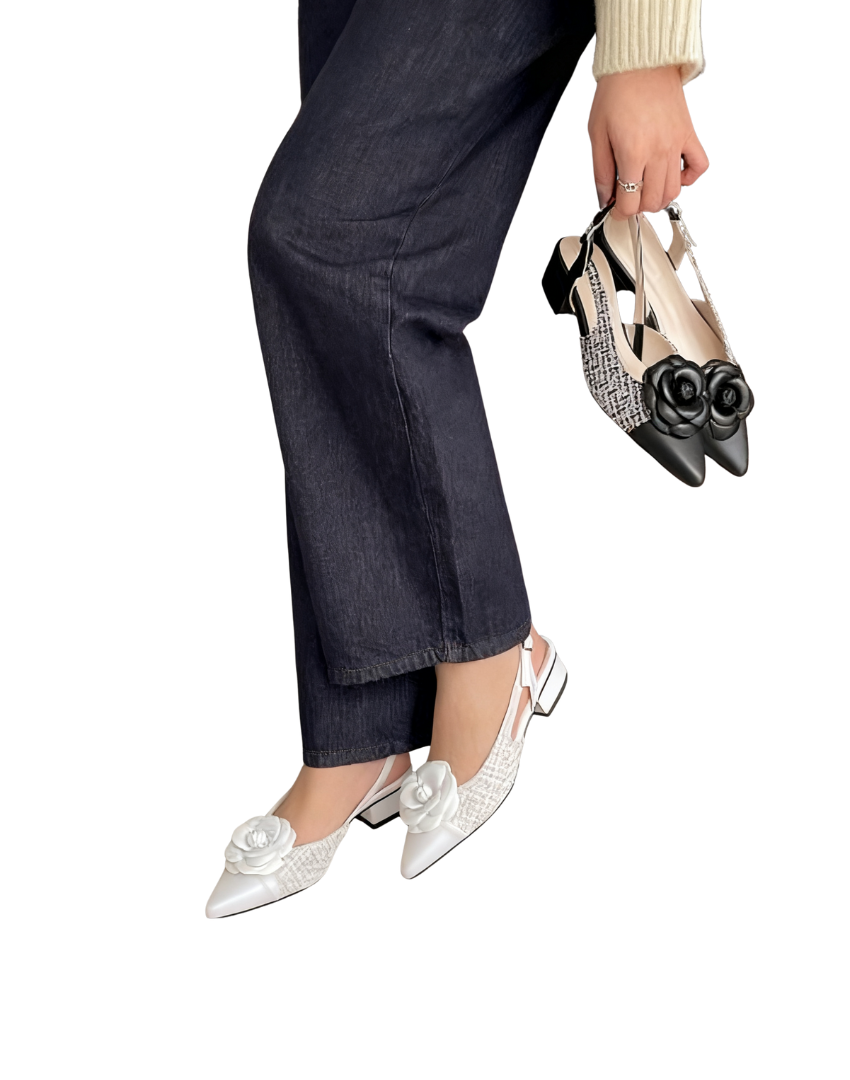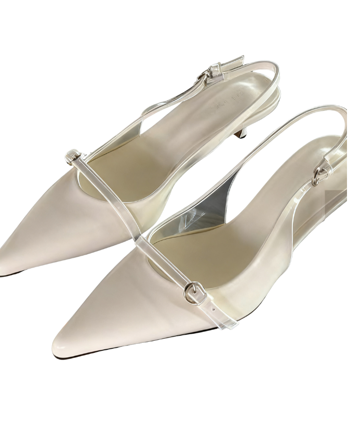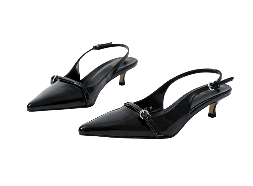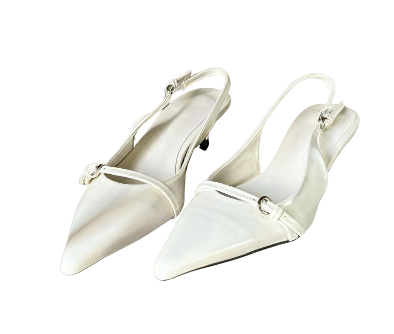 The pointed-toe design enhances the shape of the feet, instantly elongating the leg lines; the open-back strap design is lightweight and breathable, paired with an adjustable buckle, which fits various foot shapes and is easy to put on and take off.The shoe body is made of high-quality fabrics: the pure white style uses smooth satin, which is delicate in texture and has a fairy-like charm; the wine red and black styles are made of shiny leather, with a high-grade luster that makes them look more neat and sharp. The thin strap structure is adorned with metal ring decorations, containing exquisite details in simplicity; the kitten heel design combines stability and elegance, and the heel height is just right, making walking comfortable without tiring the feet.Whether paired with a dress to create a sweet atmosphere, combined with pants to show a casual style, or adding texture to a formal look, this pair of shoes can handle it perfectly~ From daily commuting to dates and gatherings, it easily shows the fashionable taste of Korean-style girls and is an essential item in the shoe cabinet to enhance the texture of the look~