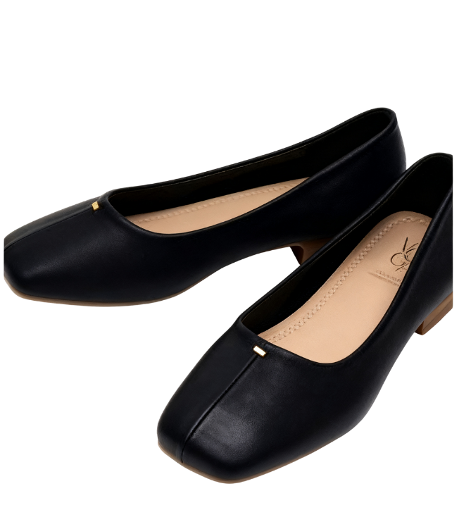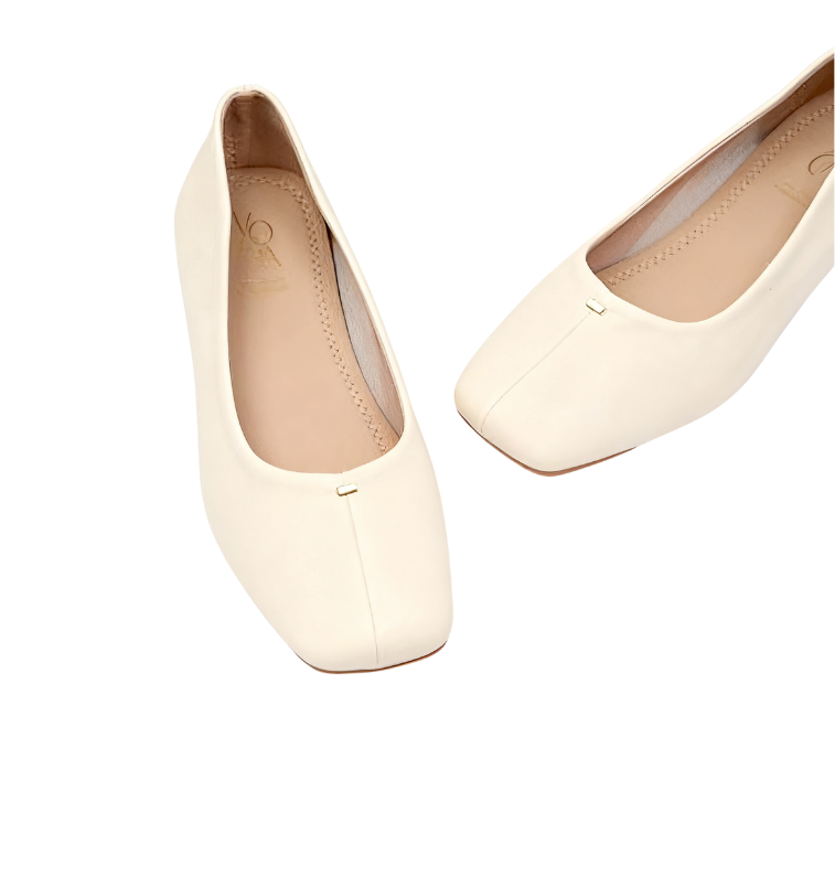 Designed with a simple and elegant square-toed, shallow-cut shape, these shoes boast clean, sleek lines that flatter the foot and create a sense of lightness and style. The upper is crafted from a finely textured material (exuding a smooth leather-like feel and visual quality), and small metal accents accent the toe, adding refined detail and a subtle, elevated feel. Paired with a stable and comfortable low-heeled heel, these shoes offer both stylish performance and a comfortable, comfortable fit, making them less tiring to wear even after extended periods. Available in elegant off-white and classic black, these Korean square-toed, shallow-cut, low-heeled shoes are a practical and versatile choice for everyday wear, whether paired with a skirt for a feminine look or paired with pants for a sleek commuting look.