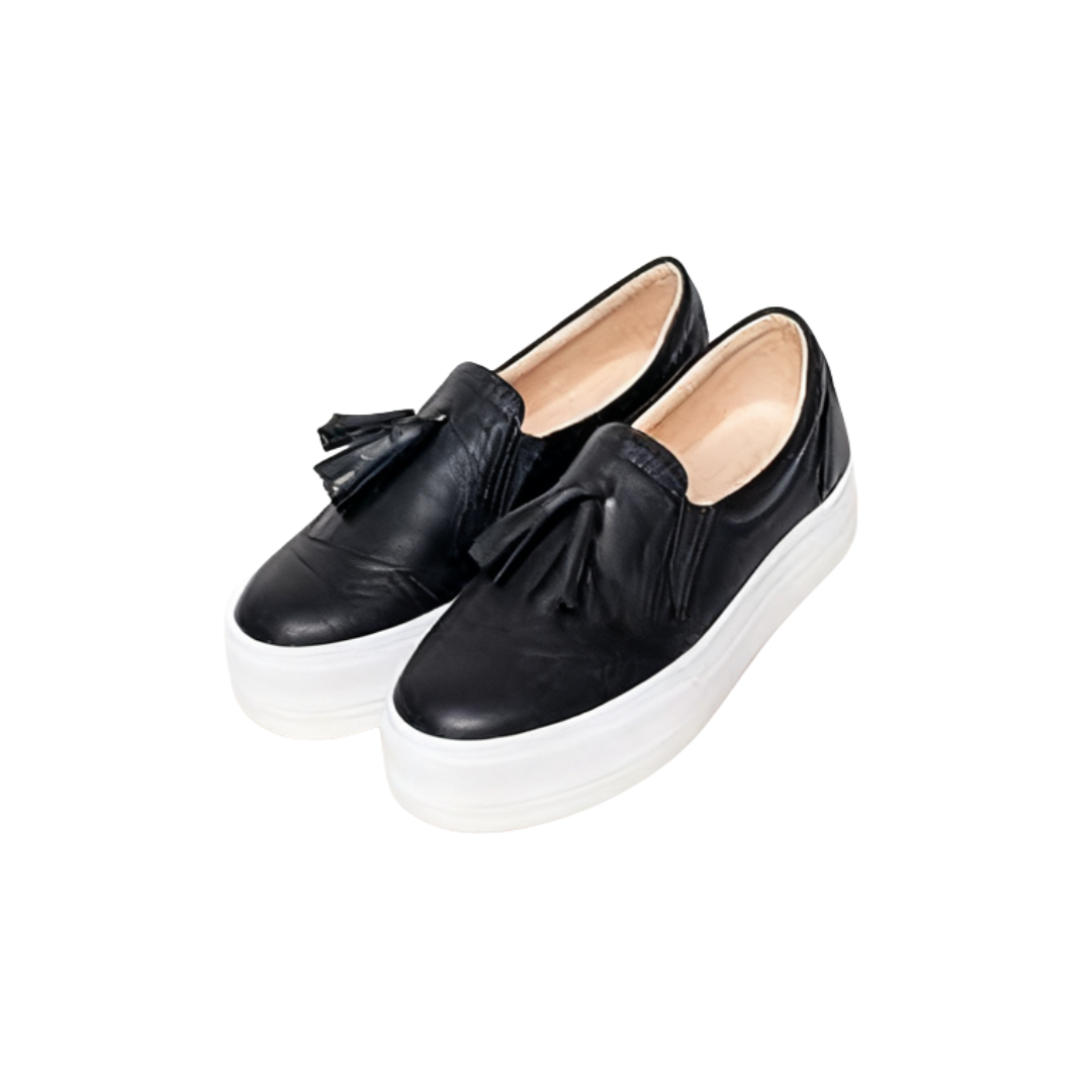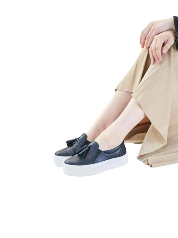 Perfectly combining effortless slip-on and slip-on comfort with stylish design details, these shoes are a sure-win for everyday wear. The draped tassels sway effortlessly as you walk, adding a playful, dynamic touch. The thick sole not only elongates your legs but also reduces pressure, ensuring comfort even during extended wear.
