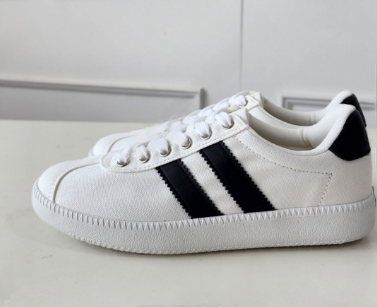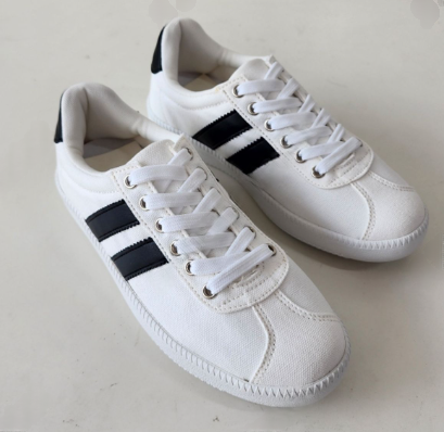 These classic canvas sneakers feature a clean low-top silhouette with a vintage aesthetic. Made from premium cotton fabric, they are designed for breathability and long-lasting daily comfort. The design is accented with two bold stripes on the side and a contrasting heel patch for a sporty, versatile look. Finished with a durable textured rubber sole for reliable grip, these shoes are perfect for casual styling. Proudly made in South Korea.