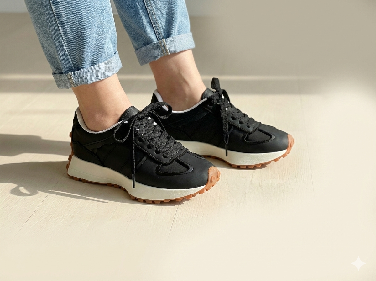 These "Nine Runner" sneakers are a stylish and modern addition to any wardrobe. Made in South Korea with high-quality polyester, they feature a sleek design in versatile colors like Black, White, and Beige. Perfect for casual wear, these runners combine comfort with a contemporary aesthetic, making them ideal for daily use.