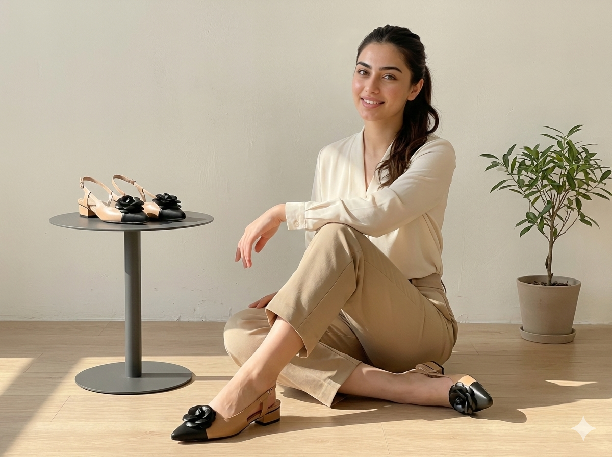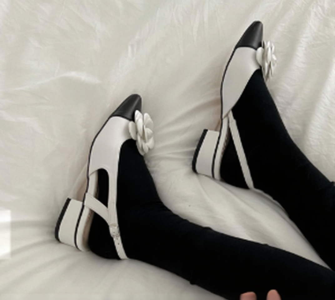 These elegant Korean-made pointed-toe pumps feature a stylish floral accent on the toe cap and a secure slingback strap design. Crafted from 100% synthetic leather, they feature a comfortable low block heel that provides both stability and a sophisticated silhouette. Available in versatile shades of Black, Beige, and White, these shoes are perfect for professional settings, formal events, or elevating a casual daily outfit.