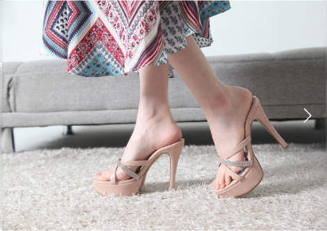 Stylish Cubic X-Line Gabosi Mule, available in three colors: Black, Pink, and White. Features a high heel and platform for a trendy look. Perfect for various occasions, with easy slip-on convenience.
