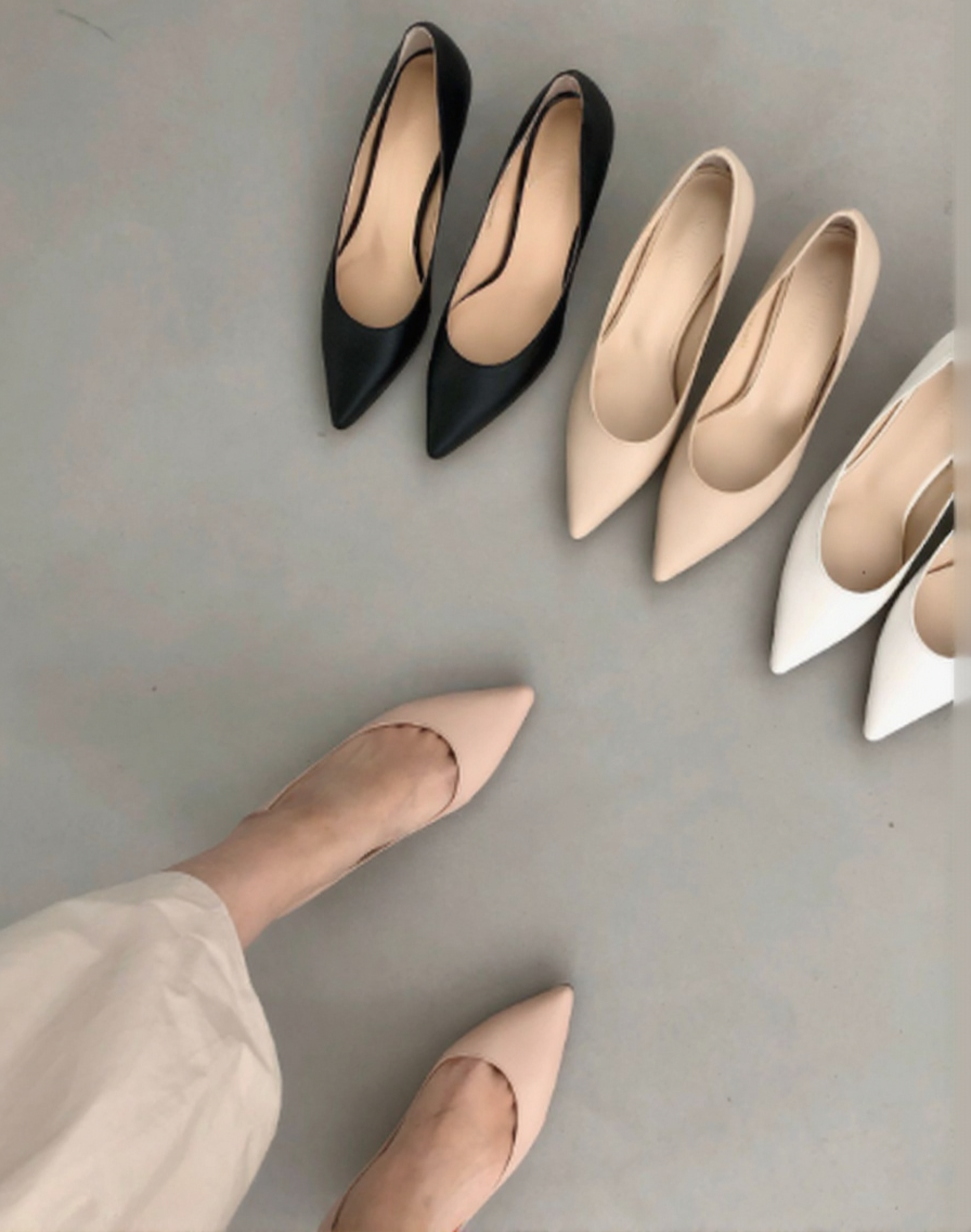 Professional stiletto pumps featuring a refined mid-high heel design, ideal for job interviews and formal office wear. Produced in South Korea, these shoes are crafted from premium synthetic leather for a sleek, polished finish. They offer a versatile look suitable for various formal occasions and come in both 5cm and 8cm heel height options to ensure the perfect balance of style and comfort.